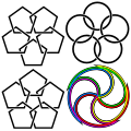 Brunnian link (three interlaced pentagons)