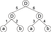 Then the ?'s in the expression tree are replaced from left to right and from top to bottom by the symbols (for simplicity represented by numerals) in the Dc, giving: