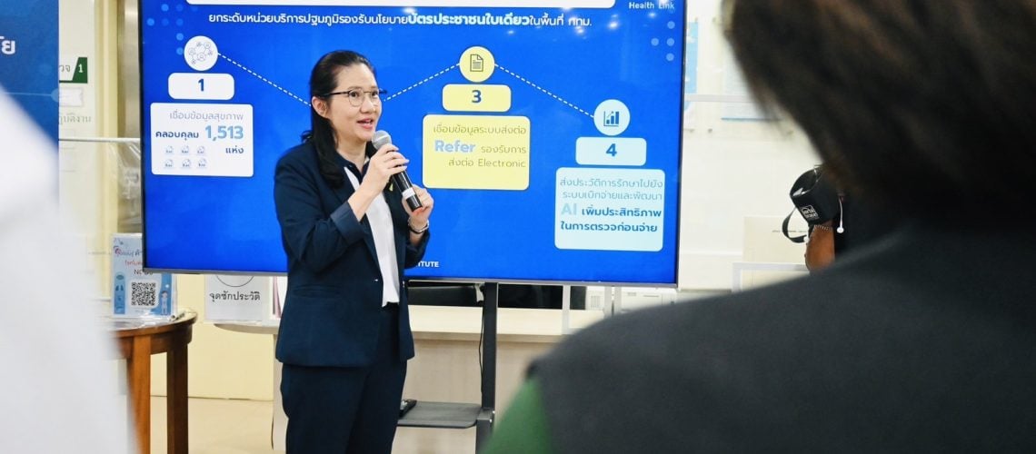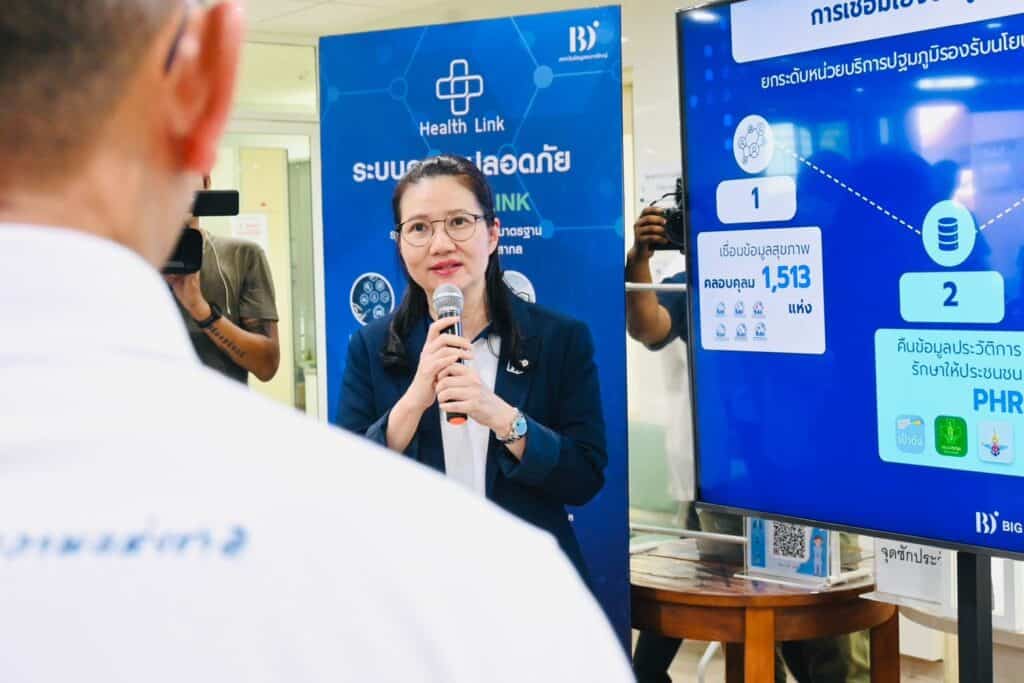22 สิงหาคม 2567, กรุงเทพฯ – รศ. ดร.ธีรณี อจลากุล ผู้อำนวยการสถาบันข้อมูลขนาดใหญ่ หรือ BDI พร้อมด้วย นพ.ธนกฤต จินตวร First Executive Vice President, BDI นางสาวน้ำฝน ประโพธิ์ศรี ผู้อำนวยการโครงการ Health Link และทีมเจ้าหน้าที่โครงการ Health Link ร่วมงานแถลงข่าวและลงพื้นที่เตรียมความพร้อมระบบบริการในการขับเคลื่อนนโยบาย “30 บาทรักษาทุกที่ สุขภาพดีเริ่มที่ใกล้บ้าน กรุงเทพมหานคร” ณ ศูนย์บริการสาธารณสุข 38 จี๊ด-ทองคำ บำเพ็ญ แขวงถนนนครไชยศรี เขตดุสิต กรุงเทพมหานคร
