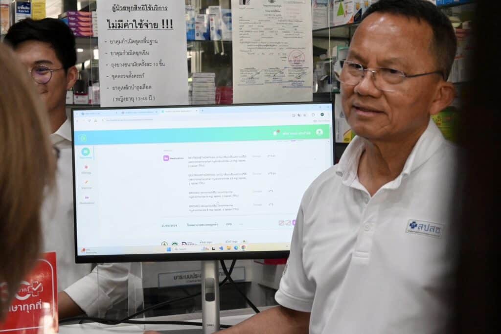 หลังจากนั้น เจ้าหน้าที่โครงการ Health Link ได้สาธิตวิธีการใช้ระบบ Health Link เชื่อมโยงข้อมูลประวัติการรักษาของผู้ป่วยจากสถานพยาบาลข้ามสังกัด พร้อมลงพื้นที่ร้านยาเมด เอ็กซ์เพรส (Med Express) แสดงถึงการเชื่อมโยงข้อมูลประวัติการรักษา เพื่อยกระดับหน่วยบริการปฐมภูมิ มุ่งขับเคลื่อนนโยบาย “30 บาทรักษาทุกที่ สุขภาพดีเริ่มที่ใกล้บ้าน กรุงเทพมหานคร”