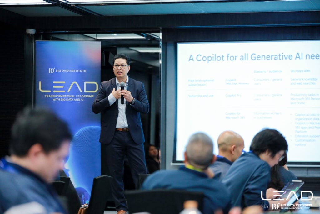 26 กรกฎาคม 2567, กรุงเทพฯ – สถาบันข้อมูลขนาดใหญ่ (องค์การมหาชน) หรือ BDI จัดหลักสูตร “ผู้นำยุคใหม่ พลิกโฉมธุรกิจด้วย Big Data และ AI” (LEAD : Transformational Leadership with Big Data and AI) เข้าสู่สัปดาห์ที่ 4 ณ โรงแรมแลงคาสเตอร์ มุ่งปลดล็อกศักยภาพผู้นำยุคใหม่ สู่การเป็นผู้เชี่ยวชาญเจาะลึกทุกมิติทาง Big Data & AI พร้อมถอดบทเรียนจากตัวอย่างการใช้งานจริงของบริษัทชั้นนำระดับโลก ทั้งภายในประเทศ และต่างประเทศ ตลอดจนเรียนรู้เทคนิคการสร้างความเชื่อมั่น และการนำ Big Data & AI ไปปรับใช้ในองค์กรสร้างความได้เปรียบทางธุรกิจ